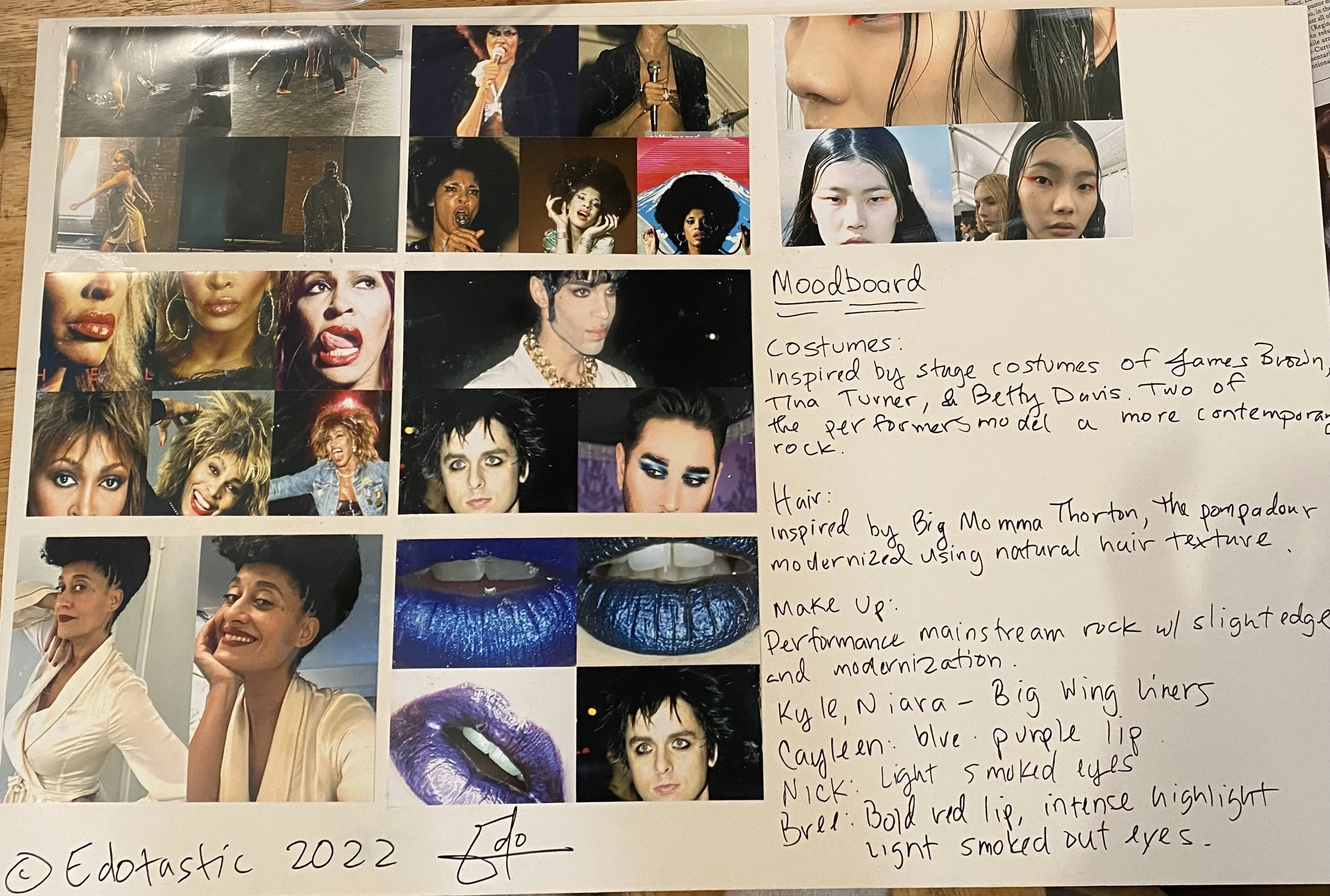 Onyx was inspired by the African American musicians who helped shaped rock and roll: Tina Turner, Betty Davis, James Brown etc. The inspiration behind the color pallet comes from the name of the piece; black with stage worthy silvers and color blocking, the mix of the fabrics reflect the time periods of the music. The hair and makeup take inspiration from the stage versions and play with Itoghan Edoloyi’s lighting.