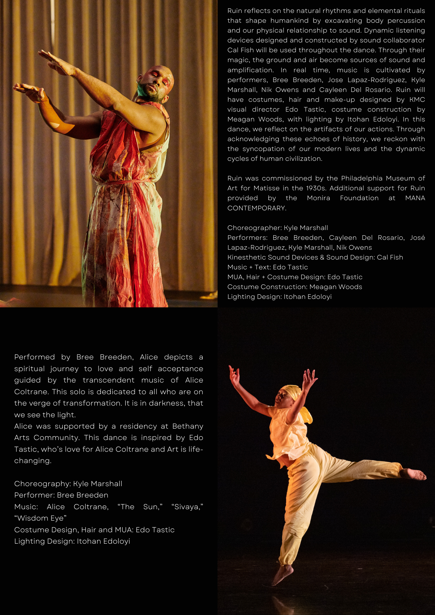 The sound score of Alice is a mashup of Alice Coltrane’s music. Reflecting inward transition, we chose stage-worthy home wear, layering with hues of yellow. The durag represented the protection of self, spirituality, and culture.